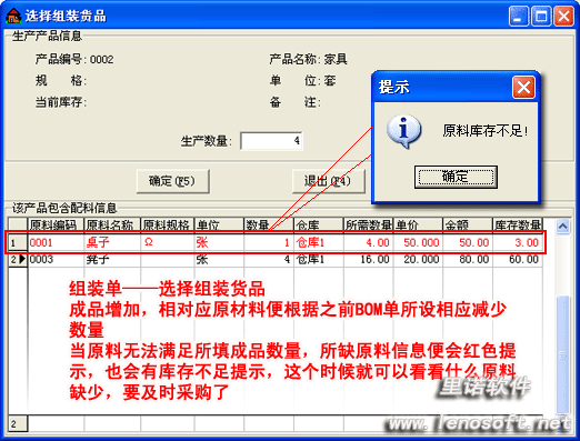 成品增加,相對應原材料便根據(jù)之前BOM單所設相應減少數(shù)量。