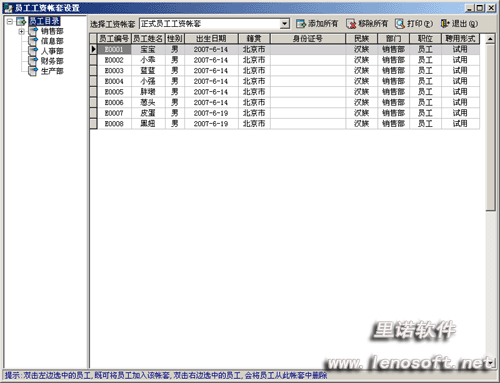 1 完善的人事管理,便捷的錄入,打印檔案表,員工照片,員工生日提醒簿;