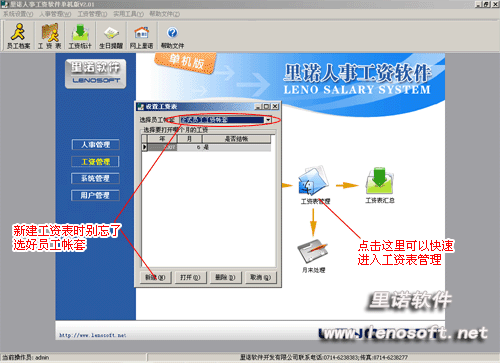 為設么要[指定員工帳套]?由于本系統支持工資多帳套,和自定義工資項目名細,所以不同的員工可以使用不同的帳套來造工資表,因而在新建工資表(單)前,需要為員工指定用于造工資表的工資套帳(帳套).
