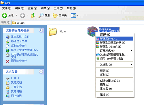 2.再把我們發給您的BS程序(下面我們用里諾BS進銷存為例)解壓拷到app文件夾下。如下圖,并解壓縮且確保文件夾在D:app文件夾下面: