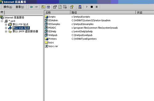 1.打開控制面板-管理工具-Internet服務管理器,雙擊運行Internet服務管理器,依次展開左側的樹形。如下圖: