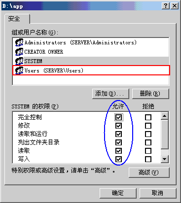 ②添加IIS用戶組,選擇“Users”用戶,將“Users”下方的權限全部勾選上,如下圖所示:
