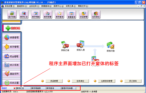 里諾進銷存單機版3.70增加Tab標簽功能及現金流水賬報表