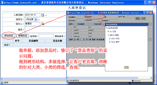2.新增入庫單等單據(jù),添加貨品時(shí),修訂了“貨品類別”的顯示問題;