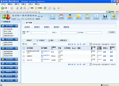 里諾客戶服務管理系統(B/S版)V2.30最新界面如下圖: