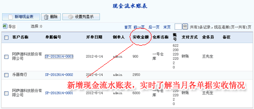1.新增現金流水賬表,實時了解當月各單據實收情況;