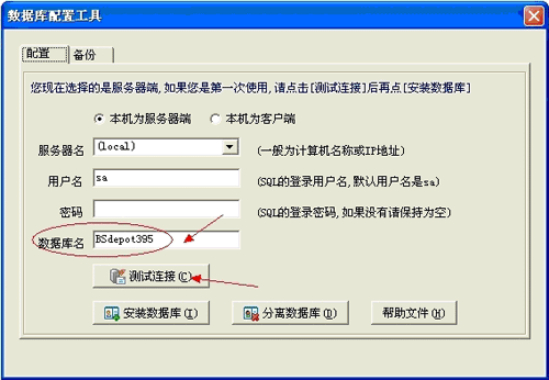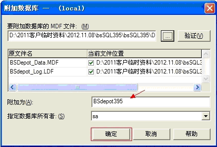 附加的數(shù)據(jù)庫名稱默認是BSdepot395,點擊確定就可以附加進去了。附加的數(shù)據(jù)庫名稱您可以自己起,待會測試鏈接的時候,就需要填上對應(yīng)的數(shù)據(jù)庫名了。數(shù)據(jù)庫所有者默認sa,無需修改。