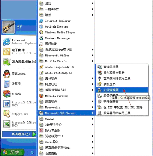 安裝完畢后,會在程序項里出現(xiàn)企業(yè)管理器字樣,方便今后您管理您程序的數(shù)據(jù)庫文件如下圖所示: