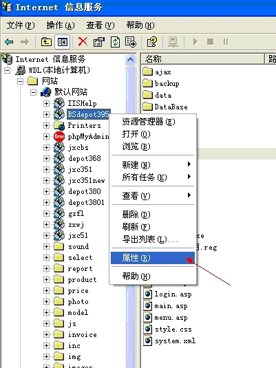鼠標右鍵剛剛新增的網(wǎng)站名稱——屬性