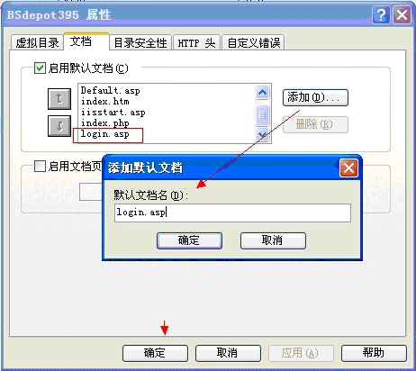 屬性——文檔——添加默認文檔“l(fā)ogin.asp”