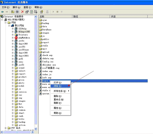 保存完畢后,IIS設(shè)置完畢。右側(cè)找到“l(fā)ogin.asp”,右鍵瀏覽,則可以訪問了