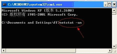 出現(xiàn)頁面后,打上“netstat -an”——【回車】,注意:“-an”前有一個空格
