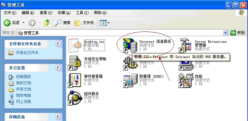 以windowsXP系統(tǒng)為例,安裝好winxpiis5.1xp后,開始——控制面板—— 管理工具——Internet信息服務(wù),如下圖所示: