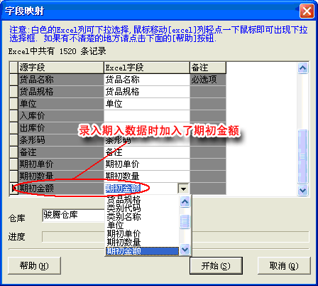 注意:左右字段請一一對應正確,才可順利導入成功,若與源字段對比沒有相關聯的信息,右側的Excel字段處請為空。