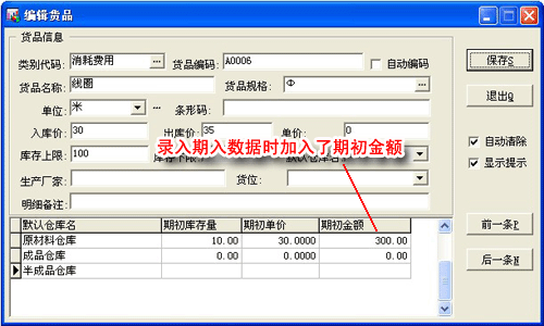 里諾倉庫管理軟件單機版V5.20期初錄入基礎資料增加期初金額字段