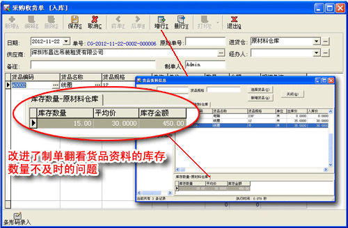 2. 改進了制單翻看貨品資料的庫存數量不及時的問題;