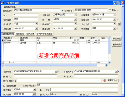 合同是合同書所記載的內容從發生到發展最后到完結的過程,是動態的。新版里諾合同管理軟件4.20從合同商品明細、合同內容、到合同文檔、合同異常情況處理、直至執行情況、是否歸檔都巨細無遺的記錄在檔。甚至還可以將紙質的合同掃描保存成電子合同,方便日后查詢使用。