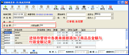 2. 銷售出貨、退貨,采購收貨、退貨界面添加商品總金額與付款金額記錄。
