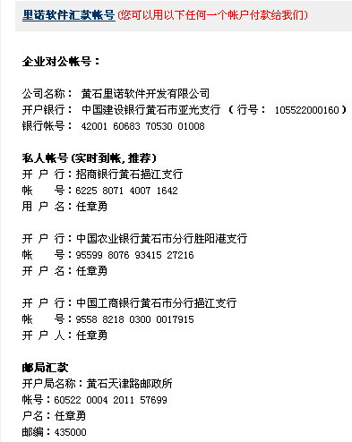 通過里諾軟件匯款賬戶付款給我們,并且通知里諾客服,在里諾客服確認款到賬后就會發送注冊碼給您進行注冊。