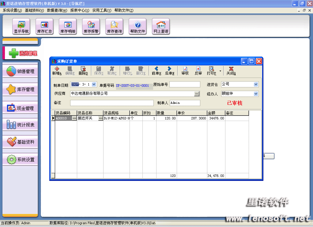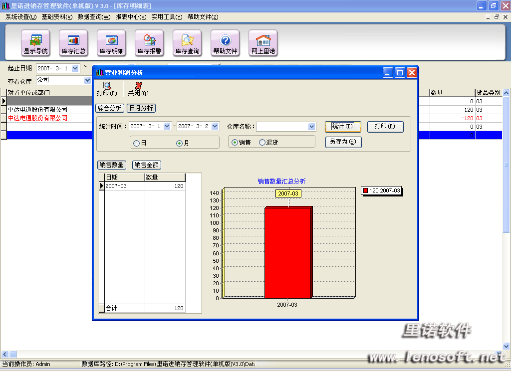 里諾進(jìn)銷存管理軟件安裝好后,點擊Windows桌面上的里諾進(jìn)銷存管理軟件的圖標(biāo)運(yùn)行軟件,點擊試用窗體上面的"登錄"按鈕,程序會默認(rèn)用admin帳號登錄.