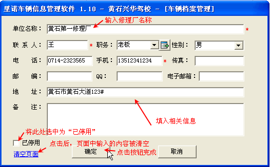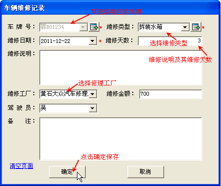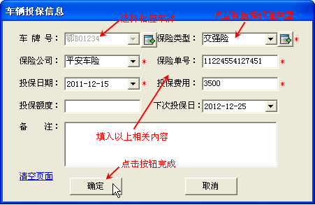 新增:在此處錄入車輛信息詳細內容。點擊確定后保存。