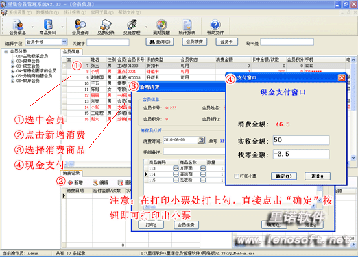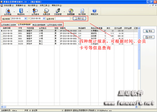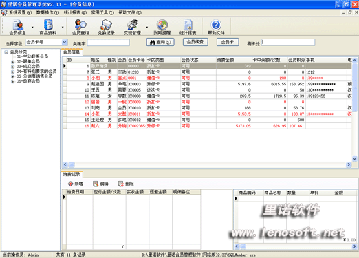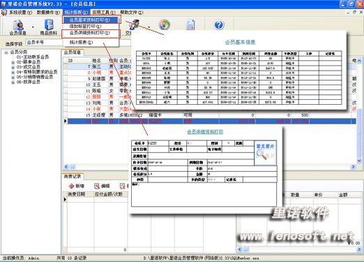 系統(tǒng)設(shè)置: 一套軟件可以有多個操作員根據(jù)管理者的權(quán)限的設(shè)置的不同,參與操作軟件中的不同的版塊,分工合作,有效的解決了分工不明、責任到個人的問題,使得公司的管理系統(tǒng)化、完善化。 注意:超級管理員擁有最高管理權(quán)限。 操作員管理 數(shù)據(jù)初始化 選項設(shè)置 修改密碼 公司信息 報表設(shè)置 數(shù)據(jù)庫備份 導(dǎo)入數(shù)據(jù) 數(shù)據(jù)操作: 商品管理中可設(shè)置商品編碼、名稱、售價、進價、條形碼等信息,并可對商品進行修改和查詢。 對會員消費情況進行錄入,自動完成累計積分,消費打折。也可以增加會員消費商品的詳細信息。管理會員的基本信息和對會員卡的操作如:會員卡續(xù)費,會員卡掛失等。 注意:如果是儲值卡消費,卡內(nèi)余額是不能低于儲值卡底金。 添加會員 編輯會員 刪除會員 新增消費 編輯消費 刪除消費 商品資料 兌換商品資料 會員卡級別 會員分組管理 民族信息 計量單位信息 消費積分管理 統(tǒng)計報表: 營業(yè)報表對比分析、可針對不同時間段按年、月、日或某一個時段進行統(tǒng)計。強大的統(tǒng)計查詢功能,每天的收款情況,客流量都可以清楚的統(tǒng)計出來,并支持打印、EXCEL導(dǎo)出。 ①會員基本資料打印 信封標簽打印 會員詳細資料打印 ②會員消費匯總報表 會員消費明細表 商品兌換明細表 會員充值統(tǒng)計報表