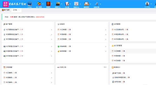 9.工作臺(tái)板塊可以一目了然的查看到今天需要聯(lián)系的客戶,已過(guò)期未聯(lián)系的客戶,今天生日的客戶及未處理的服務(wù),今日、明日、本周的日程安排等